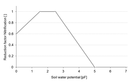 Figure 1: \(f_N(\theta)\) – Reduction factor for nitrification in dependence of the soil water potential (Abrahamsen and Hansen, 2000).