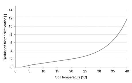 Figure 2: Reduction factor for nitrification (\(f_N(T)\)) and denitrification (\(f_D(T)\)) in dependence of soil temperature (Abrahamsen and Hansen, 2000).