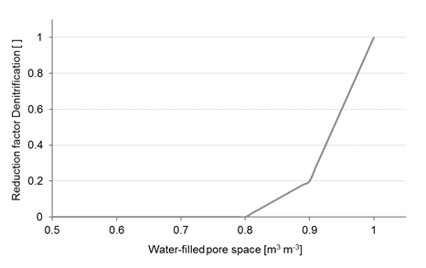 Figure 3: \(f_D(\theta)\) – Reduction factor for denitrification in dependence of water-filled pore space in soil (Abrahamsen and Hansen, 2000).